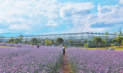 “四月鄉(xiāng)村”現(xiàn)代休閑農(nóng)業(yè)產(chǎn)業(yè)園馬鞭草花絢麗開(kāi)放,吸引游客“打卡”體驗(yàn)。鄭 敏 攝