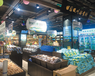 在黃山市綠色農(nóng)產(chǎn)品區(qū)域公用品牌“田園徽州”元一旗艦店,當(dāng)?shù)靥厣r(nóng)副產(chǎn)品琳瑯滿(mǎn)目。程央央 攝