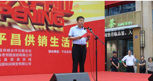 7月20日,老鄰居?平昌供銷(xiāo)生活超市隆重開(kāi)業(yè)。省供銷(xiāo)社企業(yè)發(fā)展與金融服務(wù)處處長(zhǎng)楊韜,省老鄰居連鎖公司董事長(zhǎng)許宏勇及省供投集團(tuán)部分子公司負(fù)責(zé)人,巴中市供銷(xiāo)社黨組書(shū)記、理事會(huì)主任劉羽,平昌縣委副書(shū)記、縣長(zhǎng)杜小兵,縣委常委、副縣長(zhǎng)李寶出席活動(dòng)。平昌縣委副書(shū)記曹光輝代表縣委政府致辭。省供銷(xiāo)投資集團(tuán)董事長(zhǎng)茍學(xué)川宣布正式開(kāi)業(yè)。