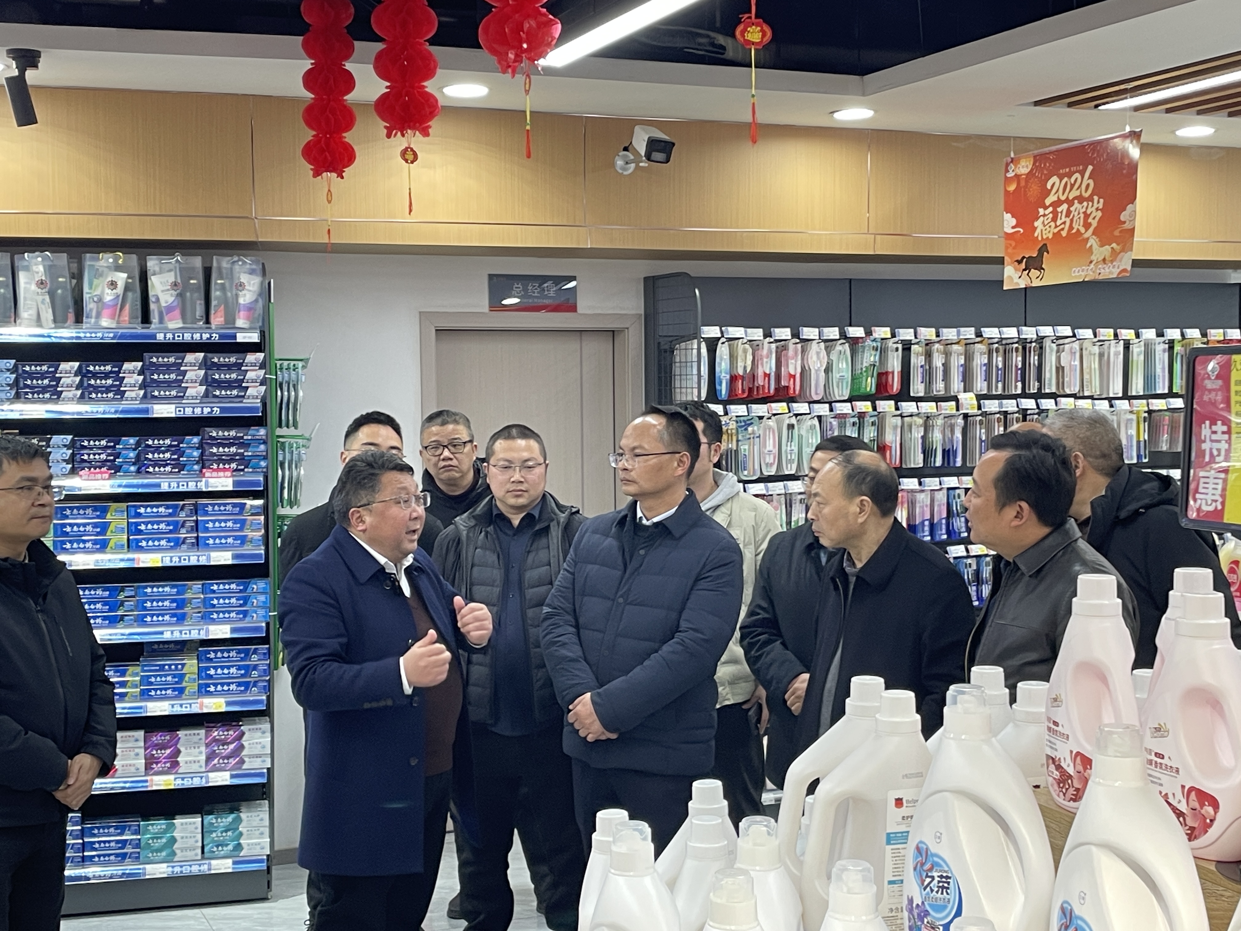 在老鄰居·平昌供銷生活超市,考察組聽取了社有企業(yè)負責(zé)人對供銷超市經(jīng)營模式、商品結(jié)構(gòu)、銷售情況的介紹,并就社有企業(yè)融入城鄉(xiāng)便民服務(wù)、拓展消費市場的運營模式進行了探討。
